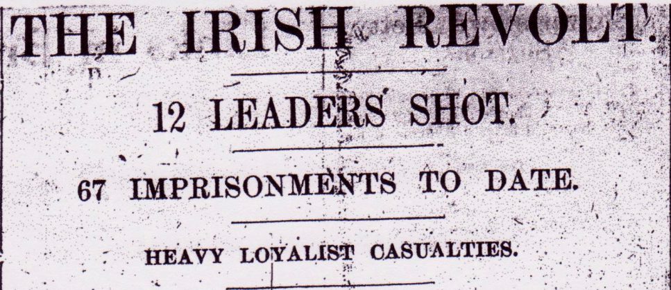 THE IRISH REVOLT, 12 LEADERS SHOT, 67 IMPRISONMENTS TO DATE, HEAVY LOYALIST CASUALTIES! reported Tyrone Courier 4/5/1916