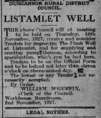 LISTAMLET WELL !reported Tyrone Courier 10/10/ 1927