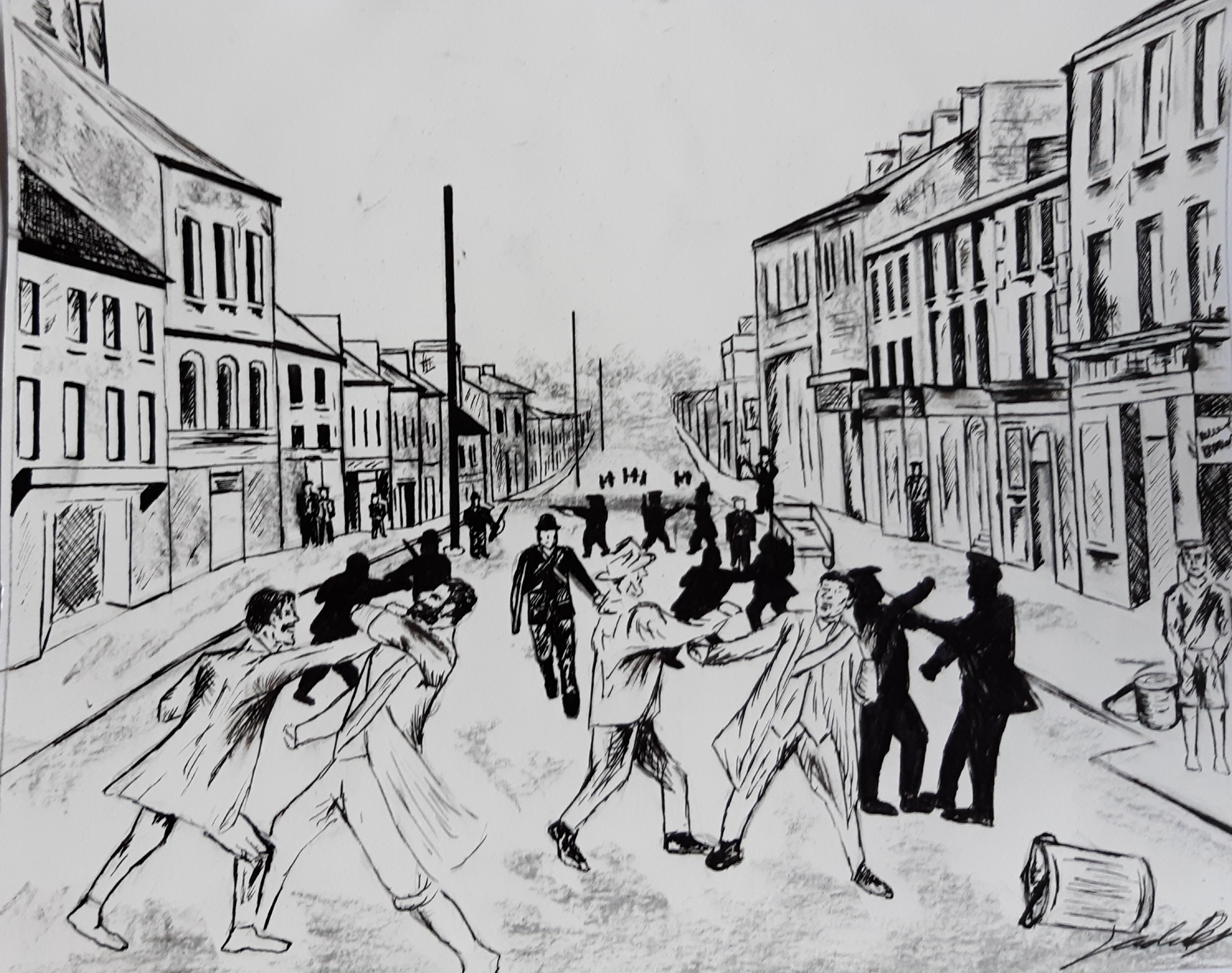attack on the village . rest can be read here https://listamlet.files.wordpress.com/2013/10/lady-day-in-the-north-the-dungannon-riot-august-18th-1880.pdf