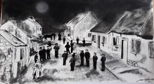 ‘It appears that a party of Orangemen were returning home about half-past 11 o’clock at night from a drumming expedition, they were guarded by an escort of eight police. On their way, they passed through Listamlaght, which is principally inhabited by Catholics, and as they were going along a shot was fired at them. Then commenced a scene which, perhaps could never have been witnessed in any other civilized country. To use the words of my informant, a gentleman of good position, they simply “sacked” the village. Most of the inhabitants were in bed and quite unprepared for an attack, and but small resistance was offered to the invading party. They smashed the windows, broke the doors and rushing into the cottages, dealing destruction round them, right and left, on all the crockery and other articles easily broken. The police interfered but the wreckers brooked no interference. They turned on the constabulary and beat them, driving them back towards Moy, and dangerously wounding two. As soon as information reached Moy, the Resident Magistrate (Capt L’Estrange) and Sub-Inspector Locke and subsequently Sub –Inspector Webb in command of a party of police arrived with rifles and buckshot and set out on cars to the scene of the outrage. The appearance presented by the village was at once curious and pitiable. In the dark, moonless night the people were gathered on the roadway in groups or were standing in front of their wrecked houses, while the women and children were brought up by fear to a high pitch of excitement. Not content with laying about them and smashing everything breakable they could find, the midnight rioters, to complete the work of destruction, set fire to one of the houses, belonging to a man, Patrick Fox; but the wind not being high, the flames were fortunately extinguished before the cottage was burned down’[2]